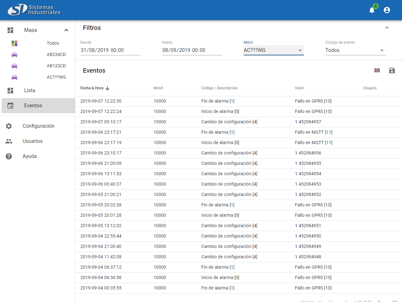 - Generación y notificación de evetos / alarmas